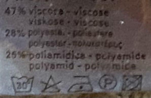 Fabric = 47% Viscose; 28% Polyester; 25% Polyamide;