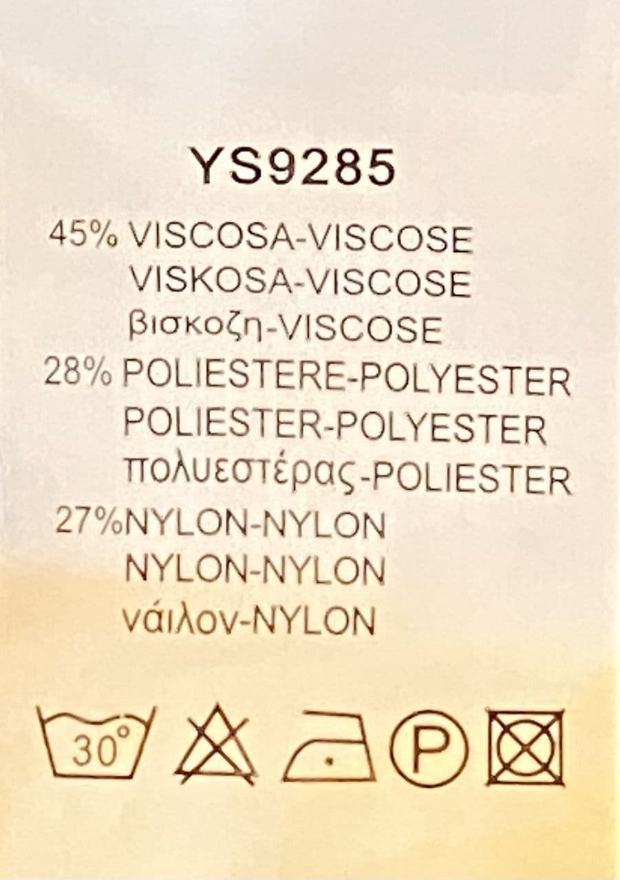 Fabric: 45% viscose; 28% polyester; 27% nylon;