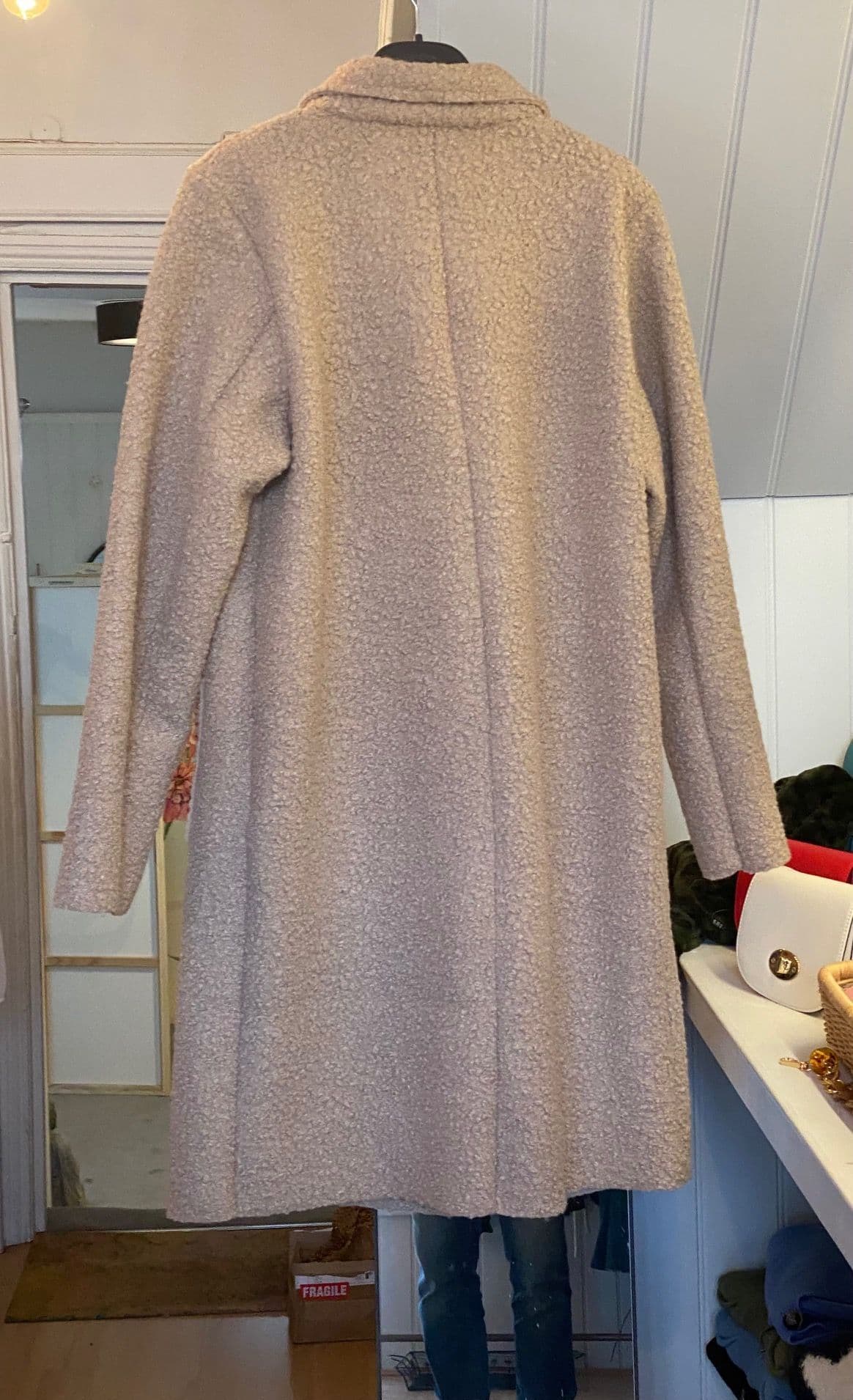 This classic boucle coat is Made In Italy by Chiaretta. The coat is light, soft and warm. It is double breasted with two patch pockets and a Revere collar.