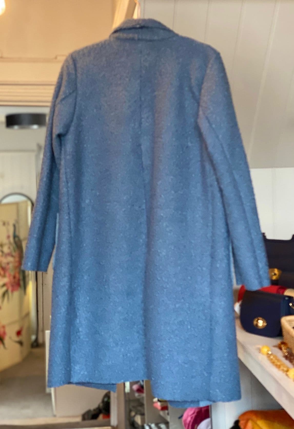 This classic boucle coat is Made In Italy by Chiaretta. The coat is light, soft and warm. It is double breasted with two patch pockets and a Revere collar.
