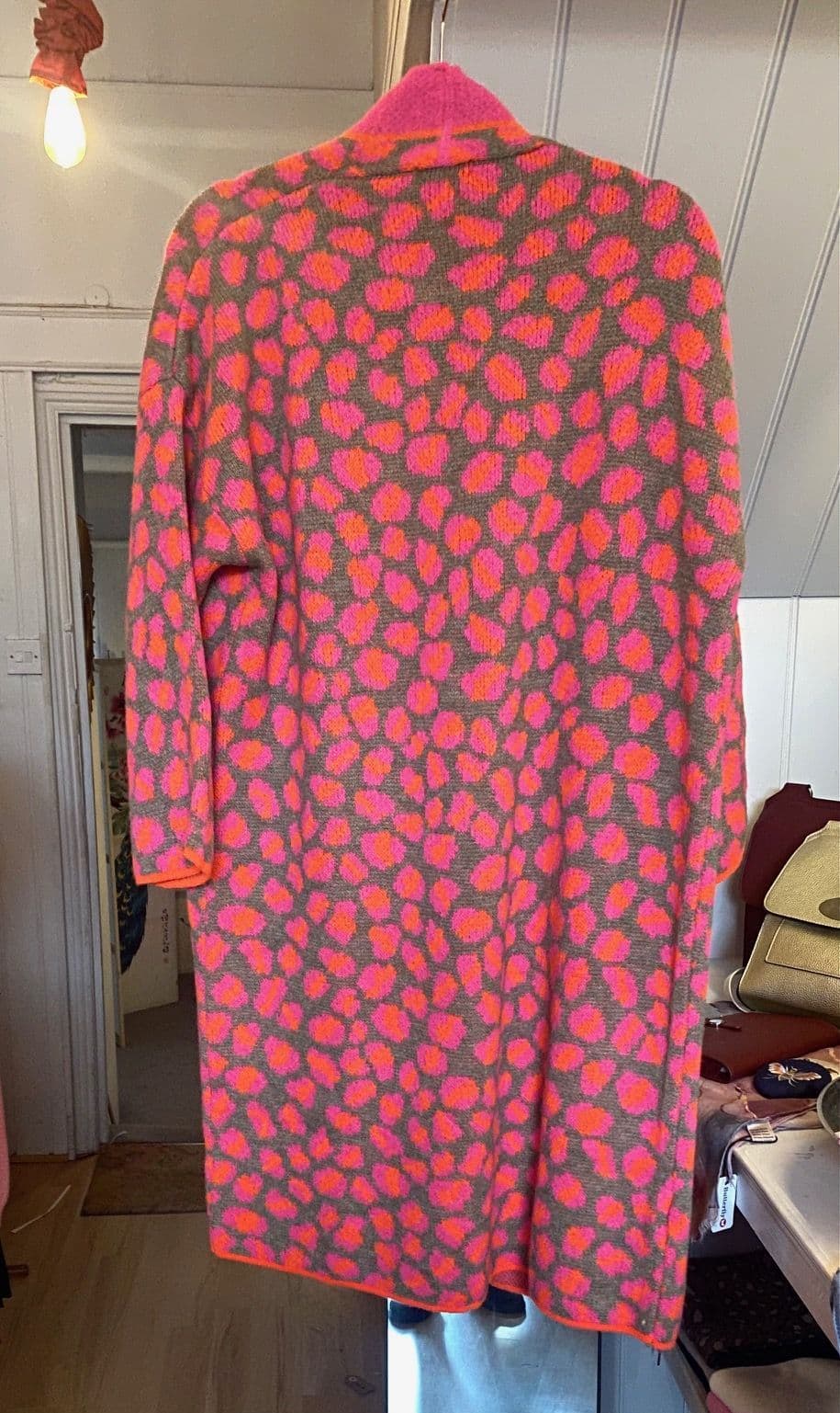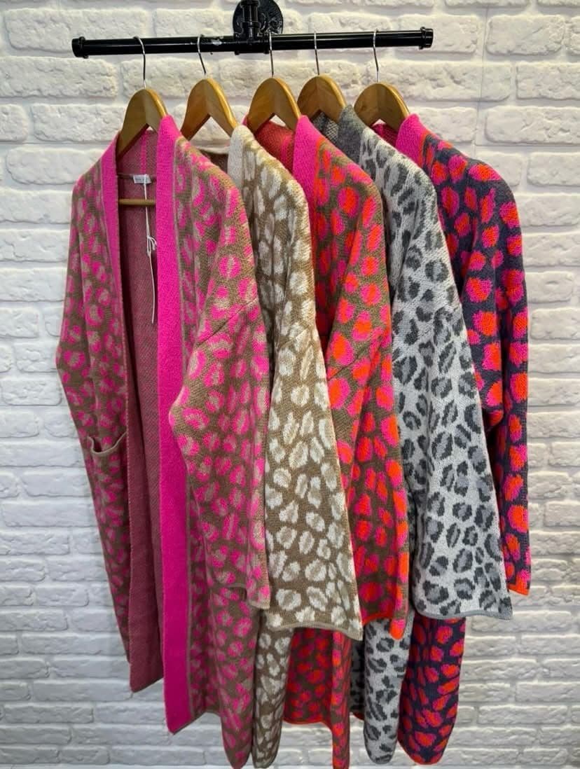 Leopard Print Coatigan - Fuchsia & Camel